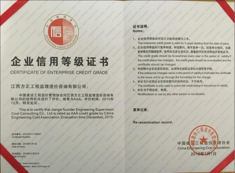 江西方正工程監理造價咨詢有限公司于二OO三年五月在南昌市工商行政管理局注冊(注冊號:360100210024211),成立的有限責任公司,先后取得建設部及江西省建設廳頒發的建設施工工程造價咨詢企業資質、招投標代理機構資質、工程監理資質及江西省財政廳頒發的采購代理資質,是專門從事工業與民用建筑工程造價咨詢、工程建設招投標代理、工程監理及采購代理的公司。